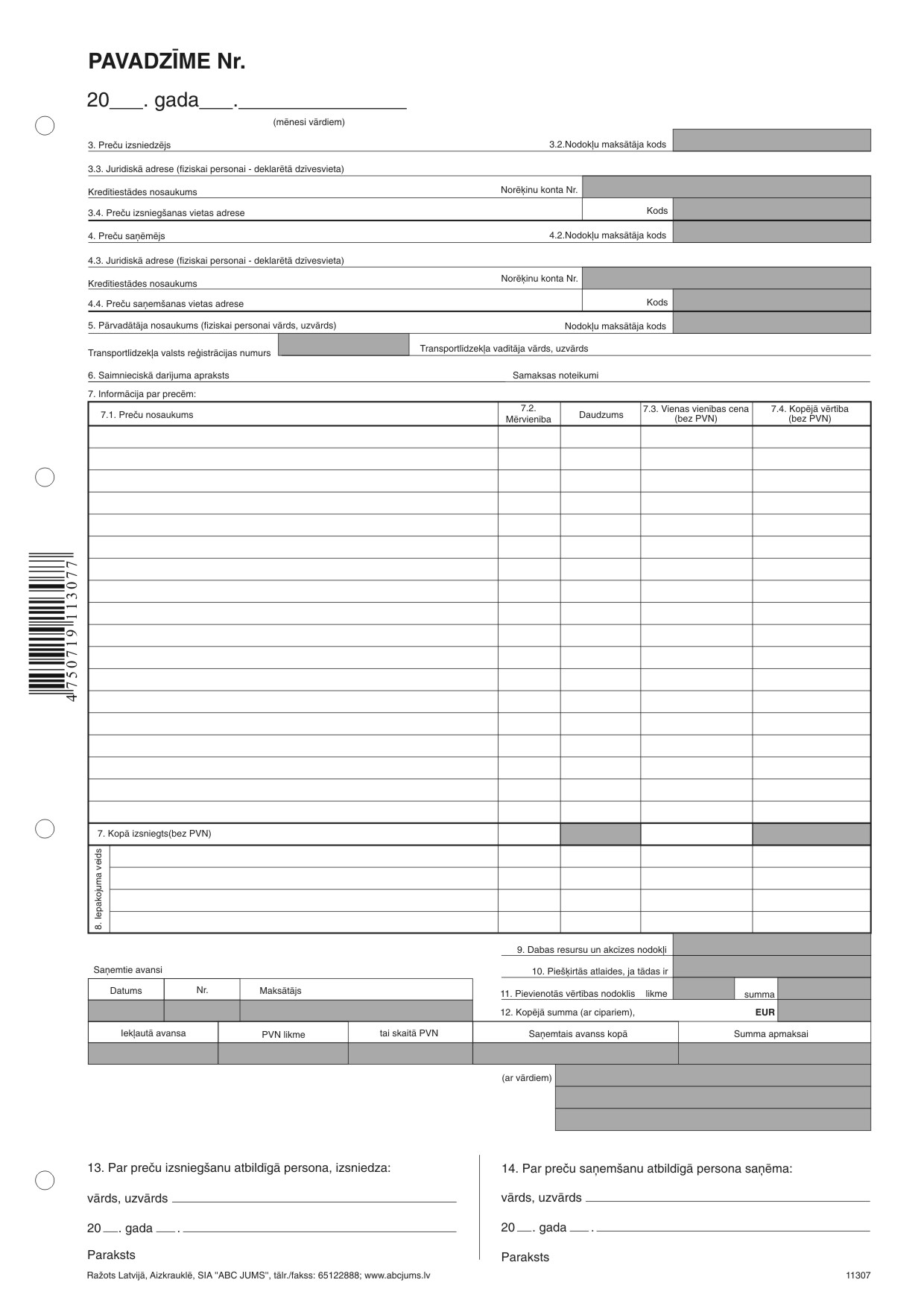 - Self-pickup of order – free pick-up at our office: Meldru Street 1, Liepaja, Latvia, by prior arrangement.